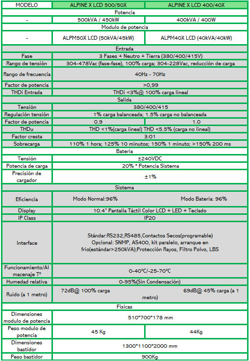 7 SAI ALPINE X LCD SERIE MODULAR ONLINE 40-500kVA