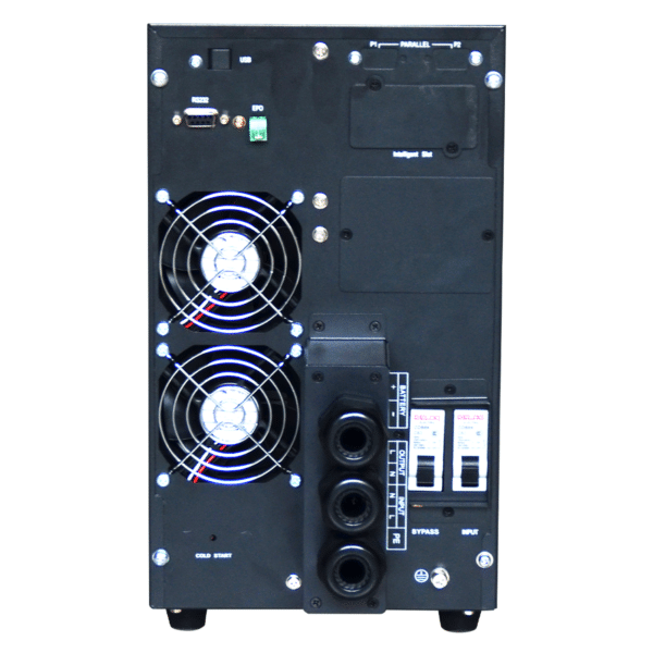 El sistema puede configurarse en paralelo hasta 4 unidades, lo que permite escalar la capacidad de respaldo según las necesidades de cada instalación. Las conexiones disponibles incluyen USB, RS232, bornero de baterías externas, EPO, bypass manual y slot inteligente, garantizando una integración sencilla en infraestructuras existentes.