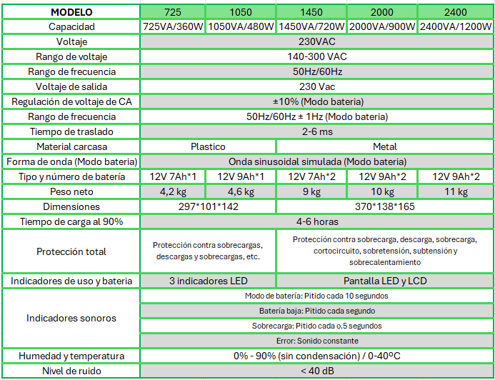 Arranque automático: El sistema se activa automáticamente en caso de un corte de energía, garantizando que tus dispositivos sigan funcionando sin intervención manual.